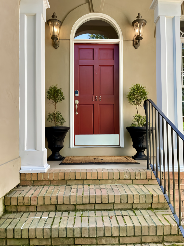 You may also be surprised to find how quickly a front entrance can look outdated just because it’s not clean! Depending on your front entrance’s layout and configuration, scrubbing your door, sweeping your porch, cleaning your lighting sconces (especially glass) or power washing your entire front zone (including your pathways) will immediately revive your space. You may even notice a slight color change in your build or finishing materials from your front door paint to siding and brick pavers!