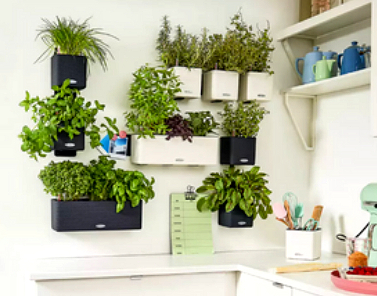 Depending on the type of vertical garden, you can choose whether you want to keep it simple and use air plants or shallow-rooted plants in small pots, or whether you want to garden deeper. For example, you can use a baking rack to hold a variety of smaller potted plants, DIY a pallet or old photo frame with air plants (which require no soil) in a cool design, or hang a railing planter or two on any vertical indoor surface and fill it with soil and the plants of your choice.