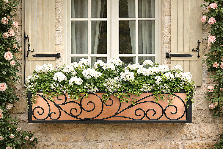 Similarly, the structural weight of wrought iron window boxes acts as a permanent frame for your home. These dark, forged lines provide a sense of "heft" and history, ensuring your windows look anchored and intentional rather than just adorned.