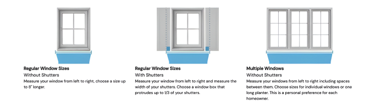- For Windows Without Shutters: Measure the width of your window and select a window box up to 8 inches longer to create a balanced appearance.