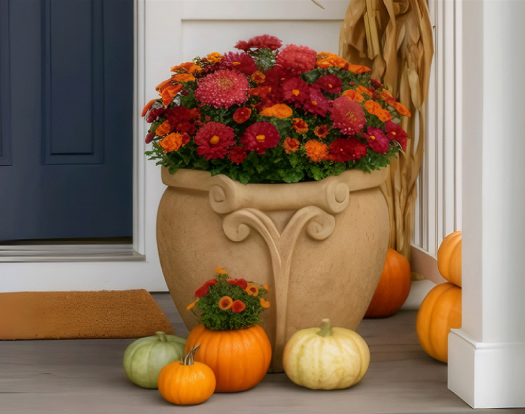 Once you’ve chosen your planters, it’s time to bring your fall vision to life with the finishing touches. This is where you can really play with layers, colors, and textures to create warm, welcoming displays that feel both festive and timeless. Think beyond traditional mums alone—combine seasonal plants with rustic accents and creative accessories to make your outdoor décor stand out. Whether you’re decorating a front porch, balcony, or garden path, these simple additions will help you capture the cozy charm of autumn: