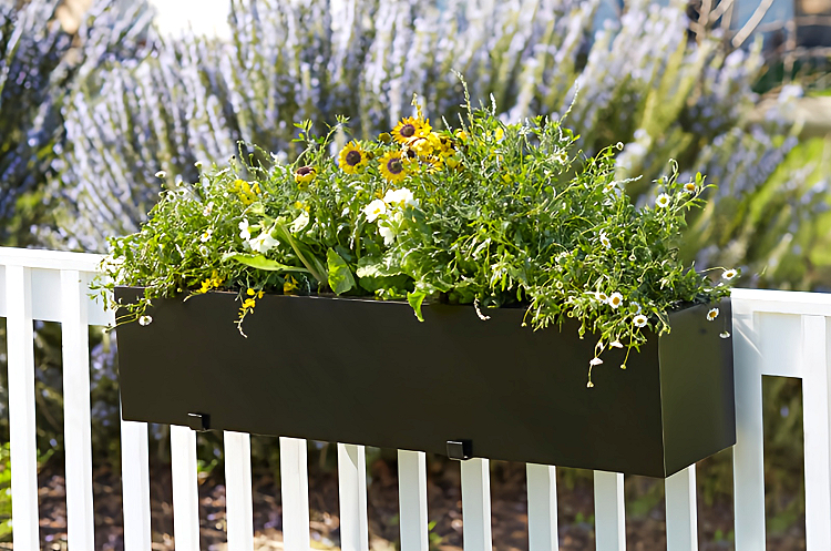 In the same line, the matching Laguna Railing Planter has an easy mounting system—making it easy to attach to virtually any railing or fence. Constructed from high-quality PVC, this stylish railing planter won’t warp, fade, or rot in any climate. Built-in drainage holes prevent root rot, for beautiful plants and happy soil.
