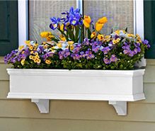 Add the Laguna, no-rot PVC composite window boxes beneath windows or to bare fences for an upscale look that screams "luxury curb appeal". Offered in many standard sizes, the Laguna is hand-built to outlast other window planters. Decorative corbels and self-watering reservoirs can be added for a complete package.